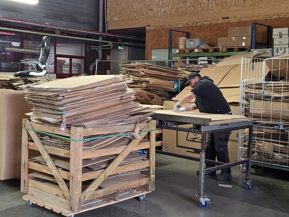 Meuble de tri en carton recyclé pour vos déchets papiers créé en partenariat avec l'association